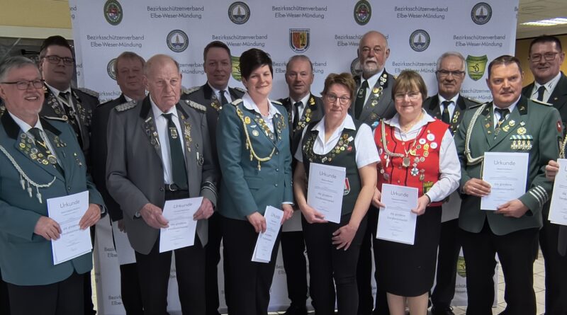 75. Bezirksdelegiertentagung in Rüspel Der Bezirksschützenverband Elbe-Weser-Mündung umfasst 95 Vereine mit derzeit 15579 Mitgliedern. Sie wurden auf der 75. Delegiertenversammlung