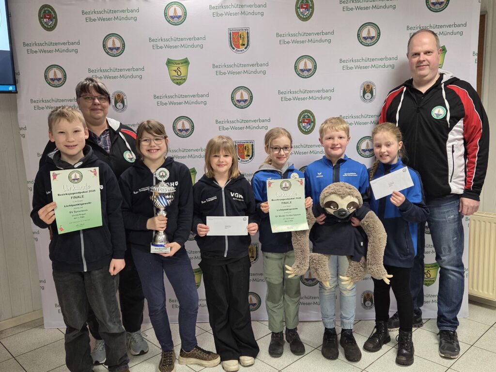 Im Wettbewerb Lichtpunktgewehr-Freihand siegte der SV Spreckens mit 432 Ringen (Jarno Tönjes/143, Svea Klintworth/141, Alea Ropers/148).Es folgte der SV Nieder Ochtenhausen mit 334 Ringen (Louisa Martens/99, Tessa Bösch/141, Mattes Busch/94). Drei Mannschaften gingen in der Auflageentscheidung an den Start. Den Bezirkspokal sicherte sich der SV Rüspel-Volkensen mit 581,2 Ringen (Merle Beckmann/196,6, Anna Fricke/185,8, Jonas Zemann/198,8) vor dem SV Nieder Ochtenhausen mit 561,5 Ringen (Louisa Martens/178,1, Tessa Bösch/195,0, Mattes Busch/188,4) und dem SV Spreckens mit 531,0 Ringen (Alea Ropers/202,2, Nele Klintwort/152,1, Fine Ropers/ 176,7).